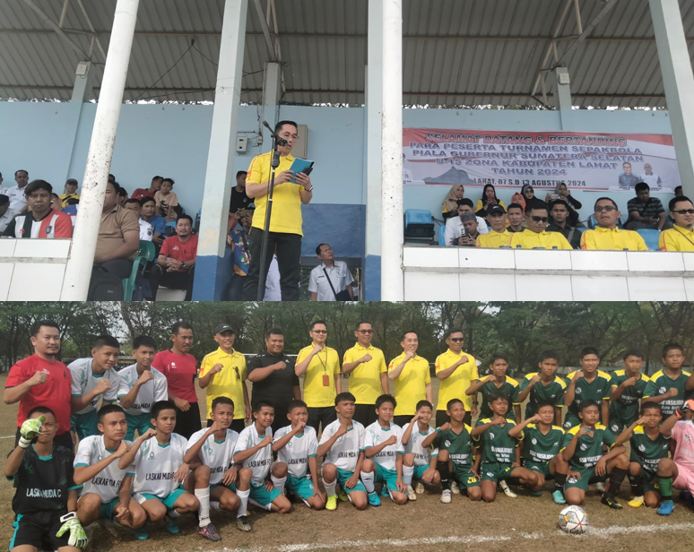 Dalam laporannya Ketua Pelaksana Rio Andika Putra menyampaikan bahwa, Turnamen sepak bola Piala Gubernur Sumsel U-15 ini diikuti oleh 18 peserta yang terdiri dari SMP dan SSB yang ada di Kabupaten Lahat.