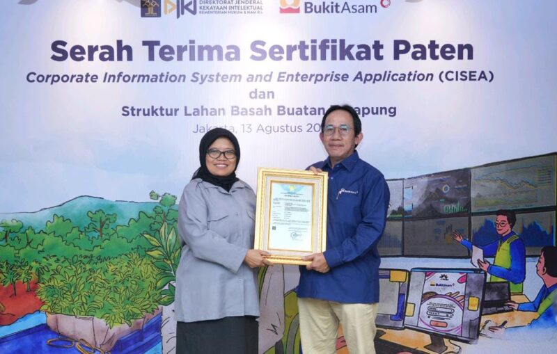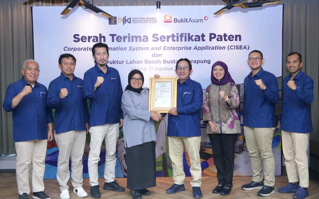 JAKARTA, CI – Release diterima media pada Rabu 14 Agustus 2024, PT Bukit Asam Tbk (PTBA) berhasil mendapatkan sertifikat hak paten untuk aplikasi CISEA (Corporate Information System and Enterprise Application) dan struktur lahan basah buatan terapung (floating wetland). CISEA adalah in-house super app yang dikembangkan secara mandiri oleh PTBA untuk digitalisasi pertambangan. Sedangkan floating wetland ialah metode yang dikembangkan PTBA untuk menghilangkan bahan pencemar seperti logam berat dan menetralkan air asam tambang.